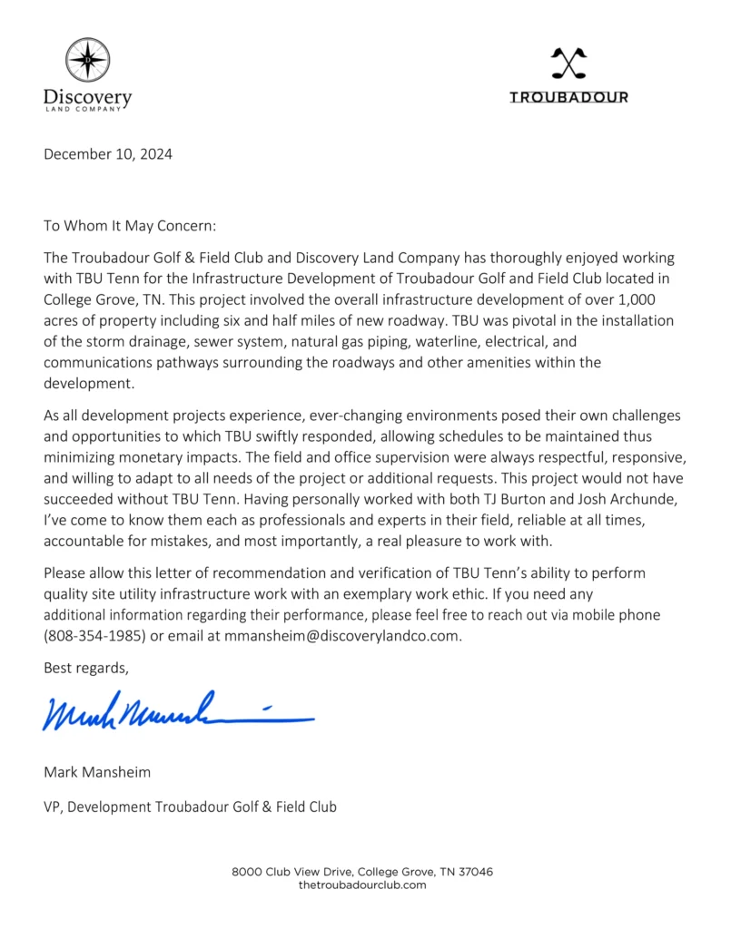 At TBU Tenn, we are more than an underground utility contractor; we are your trusted partners in attaining construction excellence. Here is why you should consider choosing us for your next project: